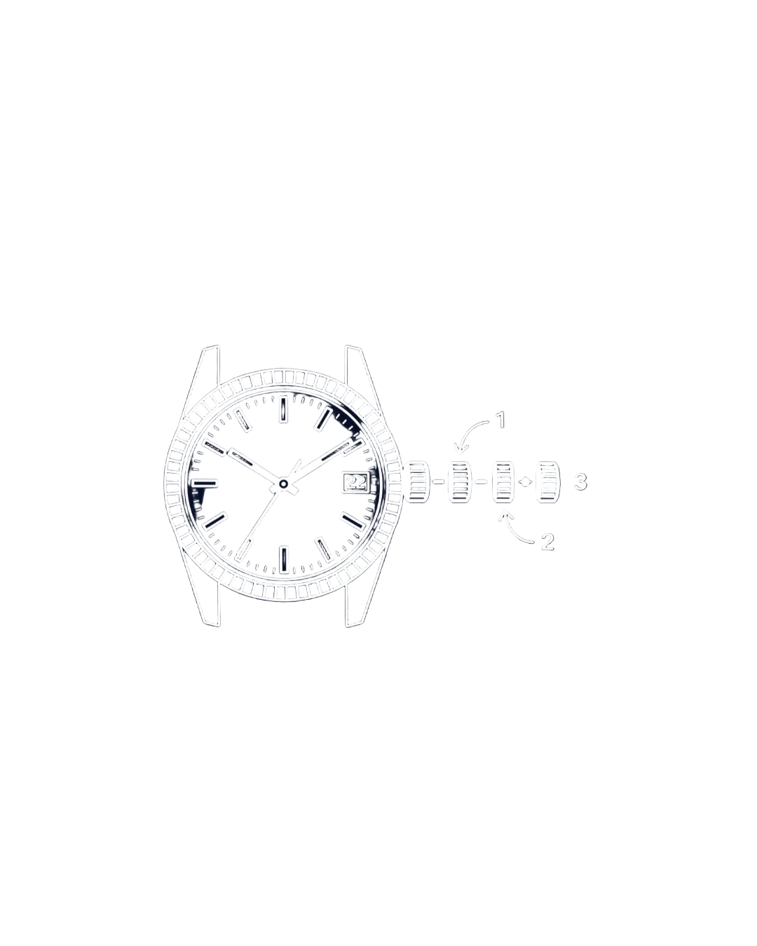 - In Position 2 die Krone nach vorne drehen → Uhrzeit wird eingestellt.